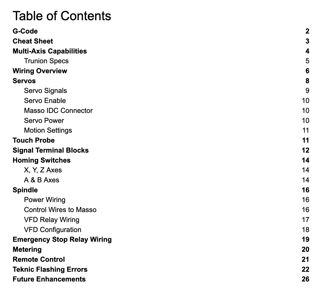 Not a “technology” per se, but I was intentional in documenting both what I did and why, and also pulling together in one place common reference sources (Teknic error codes; Masso homing switch wiring diagrams) to make it easier for my future self.